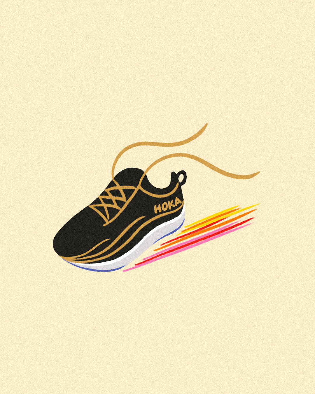 Proposing an illustration for HOKA turned out smoothly. The client immediately approved the initial artwork, which was great news. Their only additional request was to include another colourway option and incorporate HOKA's branding into the design. To streamline the process with a quicker turnaround, I utilized acrylic markers, allowing each tote to be completed in approximately 5 minutes.
